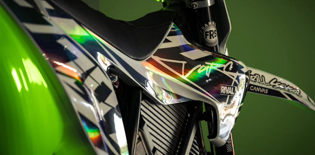The future just landed! Spectrum™ overlaminates add eye-catching color shift and depth with a transparent holographic finish that infuses every design with motion and energy. Available in Ultracurve® 1500 for motocross and Ultracurve® 1000 for powersports and snowmobiles.